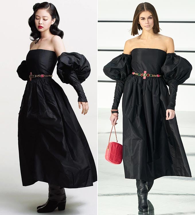 제니는 지난해 공개된 패션 매거진 '데이즈드' 4월호 커버 화보에서도 모델 카이아 거버와 같은 옷을 입었다.