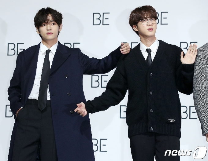 (서울=뉴스1) 김진환 기자 = 그룹 BTS(방탄소년단)의 뷔와 정국이 20일 오전 서울 동대문구 동대문디자인플라자(DDP)에서 열린 새 앨범 'BE (Deluxe Edition)' 발매기념 프레스 기자회견에서 포즈를 취하고 있다.