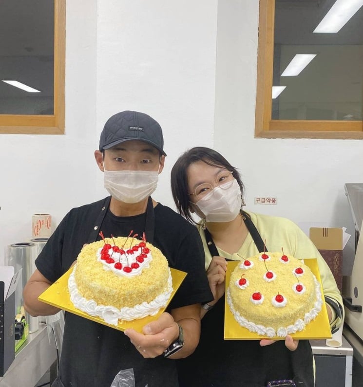 하재숙은 지난 19일 자신의 인스타그램에 "내 인생 첫 고구마 케이크"라는 글과 함께 사진을 게시했다. 공개된 사진에는 남편과 함께 케이크를 들고 밝게 웃고 있는 하재숙의 모습이 담겼다.