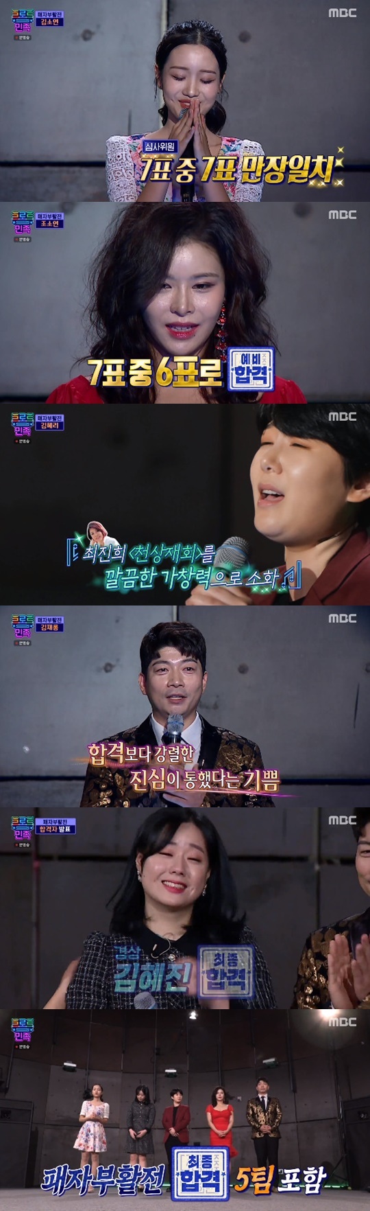 이어 서울 2팀의 조소연, 경기 팀의 이가은, 경상 팀의 김혜리, 서울 2팀의 나미애가 예비합격자 명단에 이름을 올리며 예비 합격자가 최종 합격을 넘어서 대결 열기가 고조됐다.