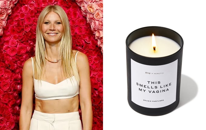 기네스 팰트로는 라이프스타일 브랜드 'Goop'(구프)를 운영 중이다. 지난해 그는 'This Smells Like My Vagina'(내 질냄새와 비슷한 향)이라는 다소 황당한 이름의 향초를 론칭한 바 있다.