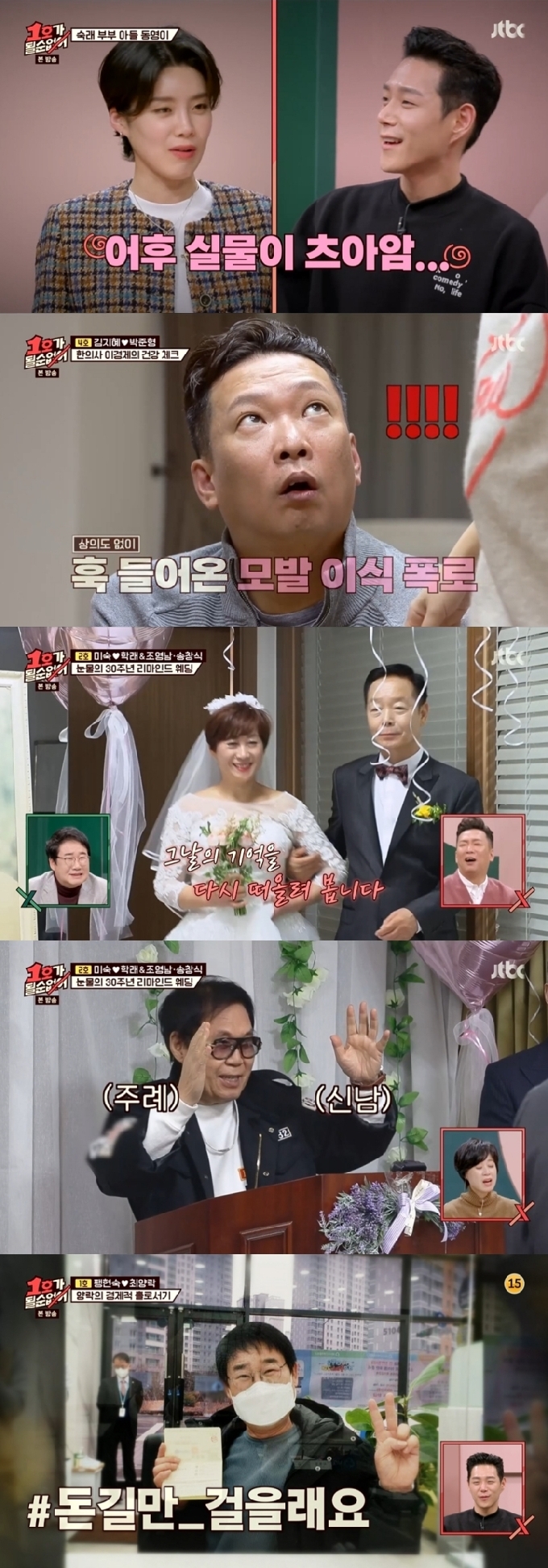 지난 21일 방송된 JTBC '1호가 될 순 없어'(기획 성치경, 연출 김나현)에서는 갈갈부부'의 건강 체크와 아들 동영이의 애틋한 마음이 담긴 '숙래부부'의 리마인드 웨딩, 경제적 독립에 나선 최양락의 신나는 하루가 그려졌다. 더불어 이날 방송에서는 김학래 부부의 아들 김동영씨가 깜짝 손님으로 스튜디오에 함께해 즐거움을 배가시켰다.