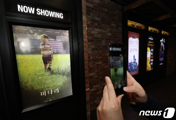 (서울=뉴스1) 박세연 기자 = 골든글로브를 수상한 영화 '미나리' 개봉일인 3일 서울 용산구 CGV용산아이파크몰에서 한 시민이 미나리 포스터 사진을 찍고 있다. 1980년대 미국 아칸소 주로 이주한 한국 가정의 정착기를 담은 영화 '미나리'는 이날 오전 8시 25분 기준 37.4%의 실시간 예매율(1위)을 기록하며 흥행을 예감하고 있다. 2021.3.3/뉴스1 <저작권자 © 뉴스1코리아, 무단전재 및 재배포 금지> 독자들의 PICK! 동서와 갈등→파혼 2번 아내..."조카는 남편 아이" 의심 충격 '고려대 얼짱' 걸그룹 멤버, 돌연 신내림..."10kg 빠지고 가족 죽는 꿈" "조갑경, 방송서 '아들 불륜' 나 몰라라…벌 받길" 전 며느리 분노 "갑자기 아기집 성장 멈춰"...서동주, 시험관 임신 끝 계류유산