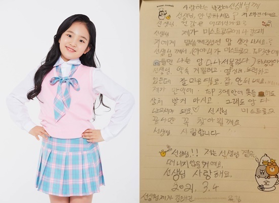 편지에서 김태연은 "사랑하는 박정아 선생님께, 선생님 안녕하세요? 저 태연이에요"라며 "선생님 건강은 어떠신가요? 선생님 제가 '미스트롯2'에 나갈 때 저에게 말씀해 주셨던 말 생각나세요? 선생님께서 '아야, 네가 '미스트롯2' 톱3안에 들면 나는 암 다 나서불겄다' 하셨잖아요"라고 적었다.