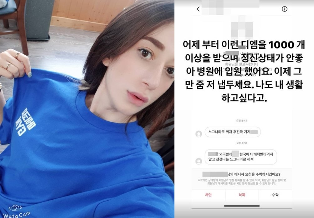 공개된 사진에서 한 누리꾼은 니갸르에게 "너네 나라로 꺼져. 후진국 거지XX"라며 "XXX 외국 벌레X아 한국에서 혜택 받아먹지 말고 전쟁나는 너네 나라로 꺼져"라고 메시지를 보냈다.