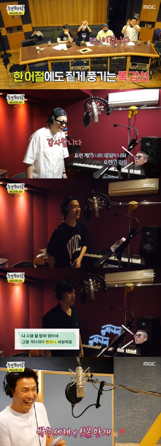 19일 오후 방송된 MBC 예능 프로그램 '놀면 뭐하니?'에서는 신곡을 녹음하는 MSG워너비 멤버들의 모습이 그려졌다. MSG워너비의 신곡에는 '갓근태'라 불리는 박근태 작곡가와 브라운아이드소울 나얼, 영준이 참여했다.