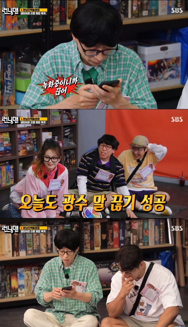 본격적인 게임에 앞서 이광수에게 전화가 왔다. 유재석은 "지금 녹화중이니까 끊어"라며 전화를 끊어버렸다. '런닝맨'에서 늘 이광수의 말을 잘랐던 유재석이었기에 더욱 웃음을 전했다. 양세찬은 "이제는 전화로 말을 끊냐"며 웃었다.