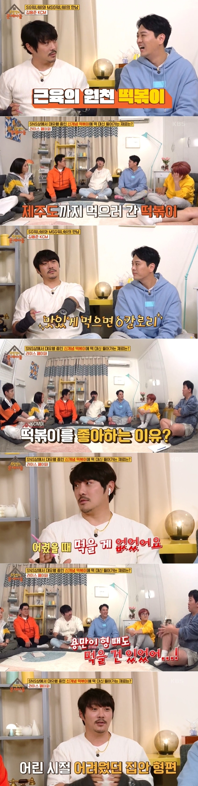 이를 들은 KCM은 "맛있게 먹으면 살 안찐다. 내 몸도 전부 떡볶이로 만든 근육이다"라고 너스레를 떨어 모두를 폭소케 만들었다.