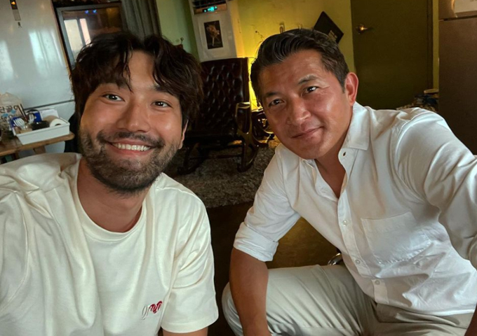 사진 속 최시원은 홍정욱 전 한나라당(국민의힘 전신) 의원과 나란히 앉아 카메라를 바라보고 있다. 최시원은 아이보리 티셔츠 차림, 홍 의원은 흰색 셔츠에 베지이색 슬랙스를 입은 모습이다.
