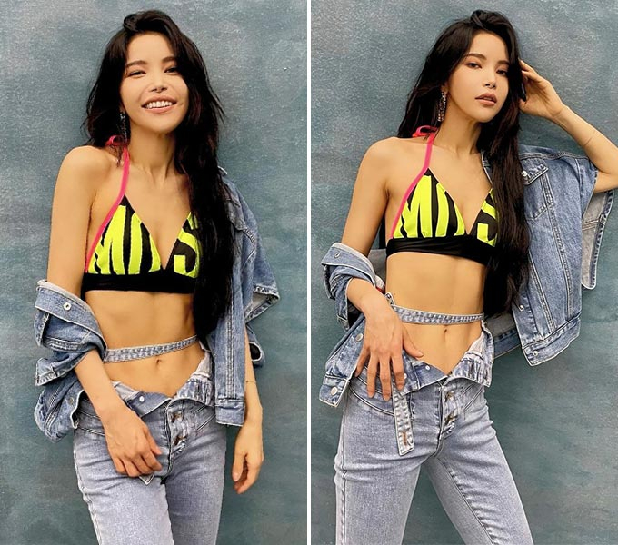 솔라는 가녀린 어깨선은 물론 운동으로 다져진 탄탄한 복근과 잘록한 한줌 허리를 자랑해 눈길을 사로잡았다.