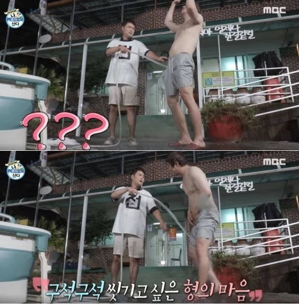 스튜디오에서 해당 장면을 본 박나래, 박재정도 "왜 이러시냐"면서 눈을 가렸다. 모자이크 처리가 되긴 했지만 기안84도 전현무의 가슴 털에 비누칠을 하는 모습이 등장해 출연진을 놀라게 했다.