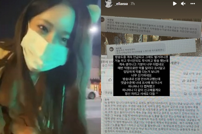 이에 윤채아는 해당 글에 직접 댓글을 남기고 대응에 나섰다. 그는 "앞선 생방송에서 루돌프 코스프레를 하다가 시청자들과 상의 뒤 이태원에 나가게 됐다"며 "(코스프레 의상에) 코트만 걸치고 돌아다니는데 (시청자들이) 계속 의상을 보여달라고 해서 보여준 게 전부"라고 말했다.