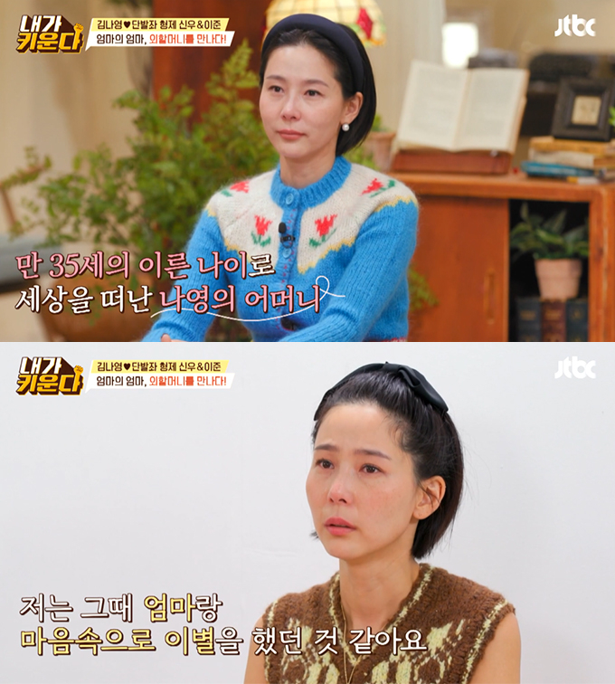 어머니가 만 35세의 젊은 나이에 돌아가셨다는 김나영은 "초등학교 입학식 하루 전날인가 그랬다. TV에서 故 노태우 전 대통령 취임식이 중계되고 있었다"며 "옆방에서 엄마가 청소하고 계셨다. 근데 방으로 가니 쓰러져 계셨다. 그게 마지막이었다"고 당시를 회상했다.