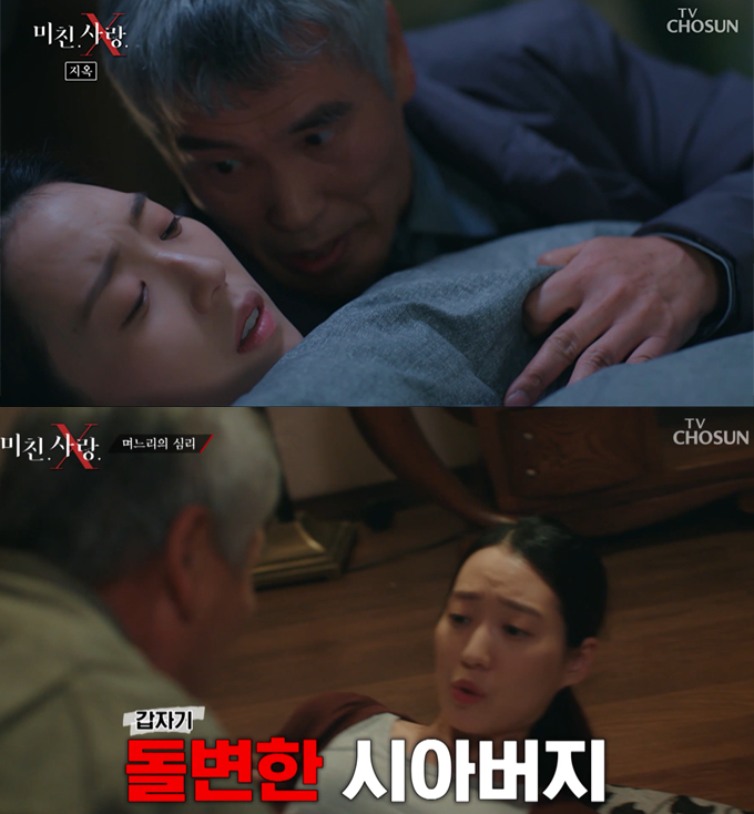 지난 19일 방송된 TV조선 '미친.사랑.X' 10회에서는 김새롬이 스페셜 게스트로 출연한 가운데 8년간 경제적 주도권을 무기로 며느리를 성폭행한 시아버지의 사건이 공개됐다.