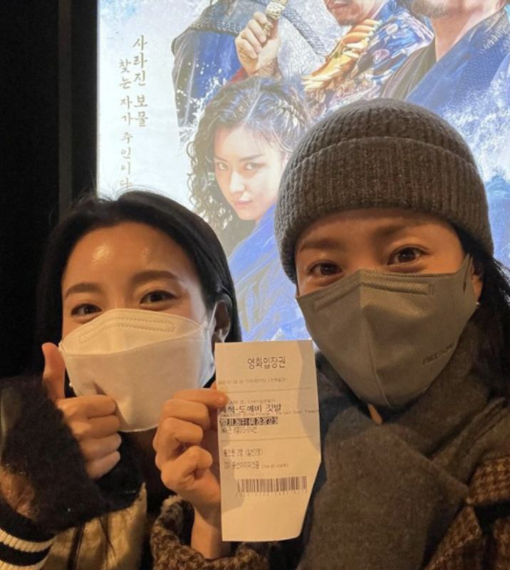 공개된 사진에는 한효주가 주연을 맡은 영화 '해적 : 도깨비 깃발' 개봉을 기념해 함께 극장을 찾은 두 사람의 모습이 담겼다.
