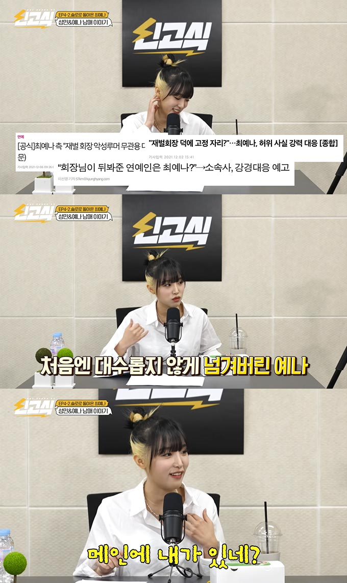 이어 최예나를 둘러싼 루머로 이야기가 이어졌다. 최예나는 재벌 회장과 관계가 있다는 루머를 처음 접했을 당시 상황을 설명했다.