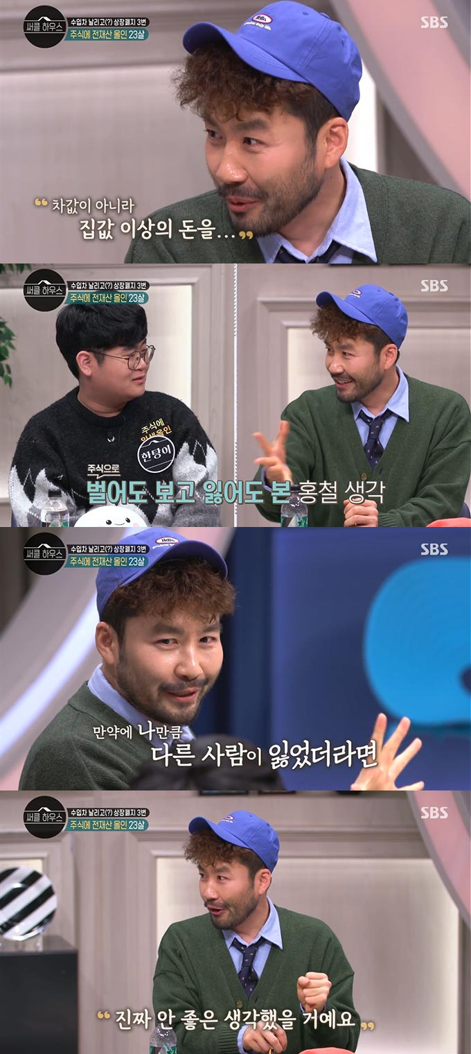 노홍철은 "조심스럽게 말하는 거지만 나는 주식으로 차값이 아니라 집값 이상의 돈을 벌다가 날려봤다"며 "내가 잃은 만큼의 돈을 다른 사람이 잃었다면 진짜 안 좋은 생각을 했을 거다. 재기를 못할 거라 생각해 삶을 비관했을 것"이라고 고백했다.