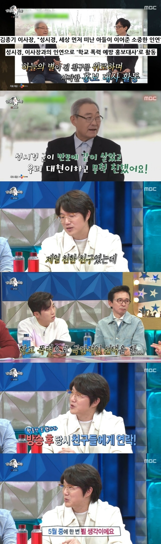 성시경은 "(김종기 이사장이) 얼마 전 방송에 나오셨더라. (성시경 본인은) 방송에서 얘기한 적이 없는 것 같다"며 "(김대현 군은) 제일 친한 친구였다"고 조심스럽게 말했다.