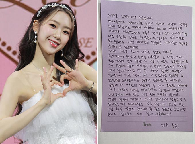 그룹 오마이걸 탈퇴 소식을 알린 지호가 손편지로 작별 인사를 전했다.