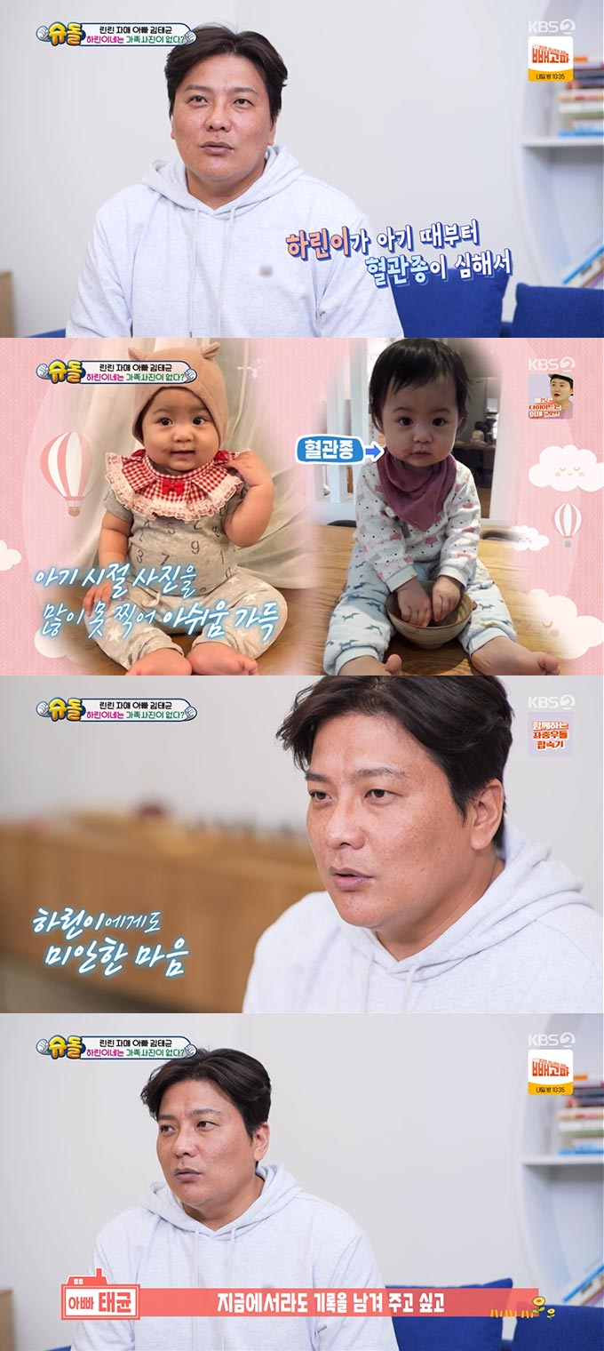 이에 대해 김태균은 "하린이가 아기 때부터 혈관종이 심했다. 아기 시절 예쁜 모습을 남겨주고 싶은데 사진을 못 찍어줘서 아쉽다"고 말했다.
