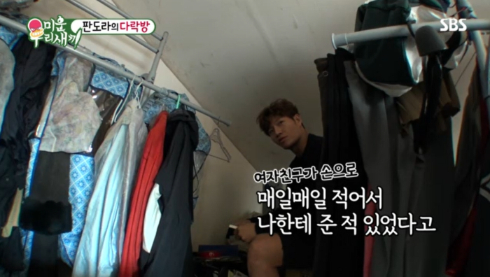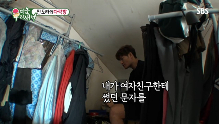 김종국은 당시 다락방에서 전 여자친구가 쓴 편지를 발견하고 "내가 보낸 문자메시지를 손으로 적어준 애가 있다"며 "나를 왕자님으로 부르는 친구였다. 내가 뒤로 갈수록 문자가 짧아졌다. 9월 14일 오후 10시에는 '운동 가려고'라고만 보냈다"고 말했다.