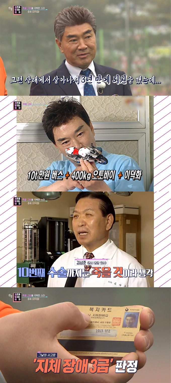 이덕화의 담당의는 "수술만 53번을 했다"며 "당시 10번째 수술까지는 '이덕화씨 돌아가신다'고 했었다"고 했다. 담당 의사가 임종을 예감했을 정도 상황이 심각했었던 것.