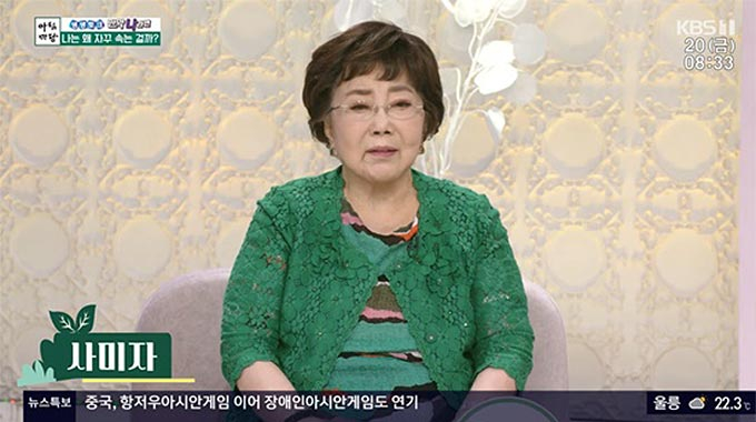 사미자는 20일 방송된 KBS1 '아침마당'의 '생생토크 만약 나라면' 코너에 출연해 '나는 왜 자꾸 속는 걸까?'를 주제로 이야기를 나눴다.