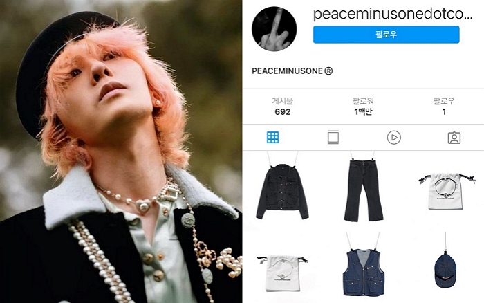 24일 지드래곤이 운영하는 브랜드 '피스마이너스원' SNS를 보면 프로필 사진이 '손가락 욕' 사진으로 변경됐다. 앞서 이 계정은 검정색 배경에 로고 'peaceminusone'가 적힌 사진을 프로필 사진으로 써왔다.