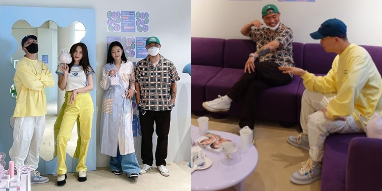 사진에서 개리는 아내와 함께 다이나믹듀오 개코, 김수미 부부와 나란히 서서 포즈를 취하고 있다. 부부동반 모임을 할 정도로 가까운 친분이 눈길을 끈다.