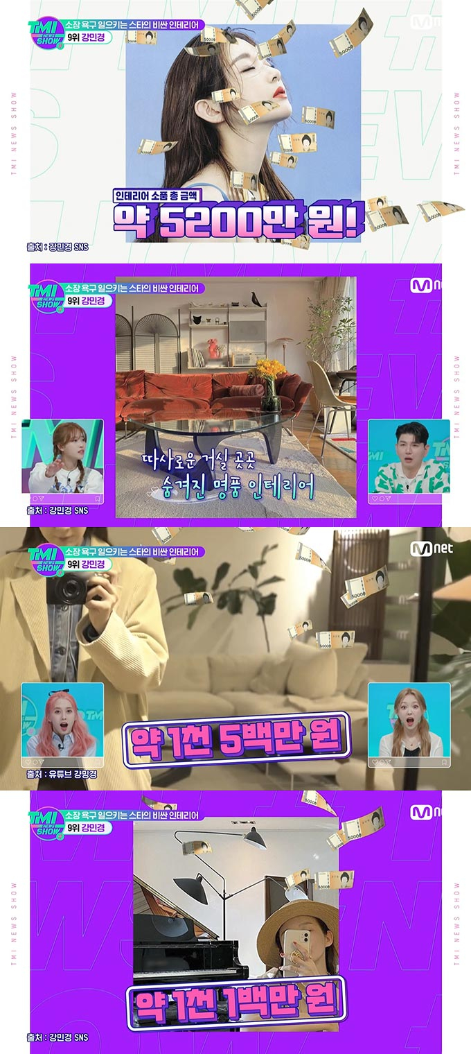 8일 방송된 Mnet 예능 프로그램 'TMI SHOW'에서는 '소장 욕구 일으키는 스타의 비싼 인테리어 BEST 11' 순위가 공개됐다.