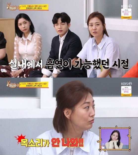 가수 장윤정이 무명 시절 담배 연기로 가득한 라이브 카페에서 노래를 불러야 했던 과거를 회상했다.