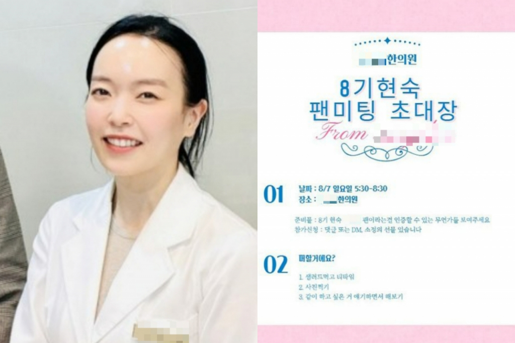 사진에는 현숙이 운영하는 한의원에서 진행되는 팬미팅 초대장이 담겼다. 현숙은 자신의 팬이라는 걸 증명할 수 있는 무언가를 준비물로 요청했다.