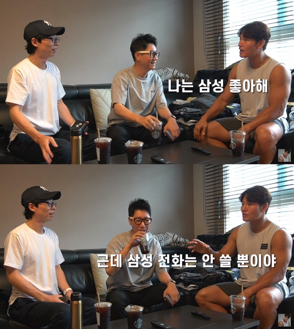 이에 김종국은 "난 (삼성에서 스마트폰을) 줘도 안 받는다"며 "나는 삼성을 좋아한다. 근데 삼성 스마트폰은 안 쓴다"고 했다. 그러면서 "삼성 스마트폰을 쓸 줄 모른다"며 "오해하지 않았으면 좋겠다. 삼성 너무 좋아하는데 원래부터 쓰던 게 손에 익어 계속 쓰게 된다"고 설명했다.