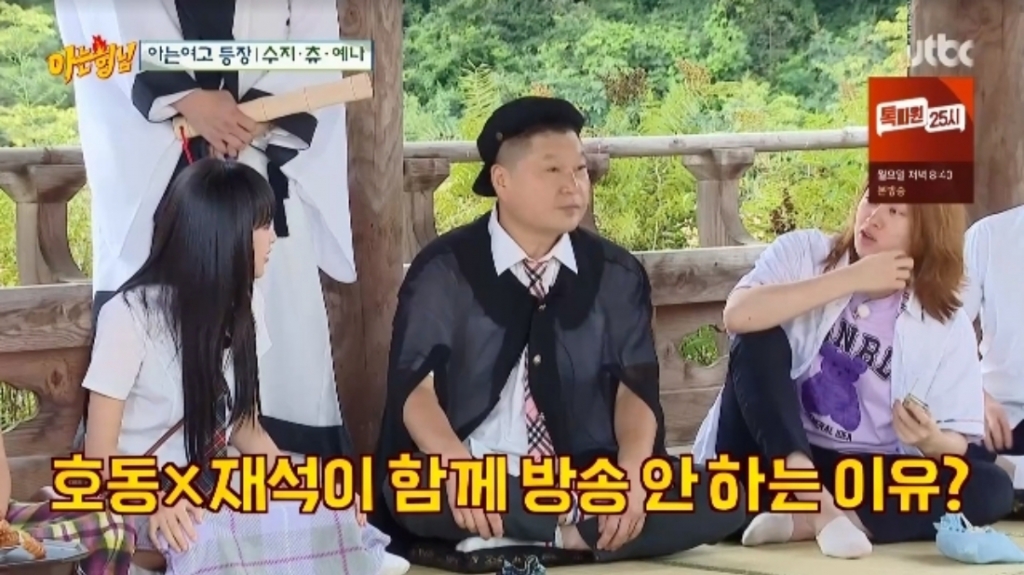 10일 오후 방송된 JTBC 예능 '아는 형님'에서는 가을을 맞아 게스트 이수지, 츄, 최예나와 함께 수학여행을 떠난 멤버들의 모습이 그려졌다.