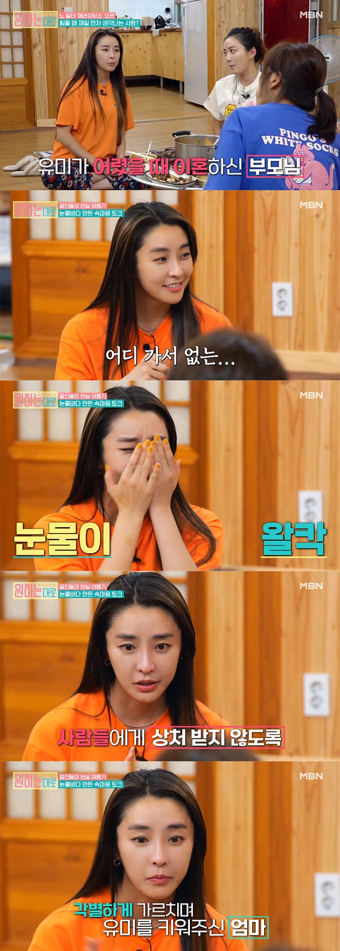 배우 정유미가 이혼 후 자신을 혼자 키운 어머니를 떠올리다 눈물을 쏟았다.
