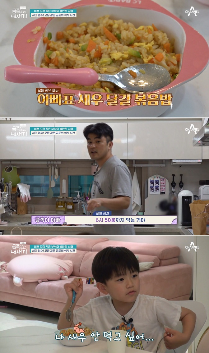 금쪽이 남매의 공포스러운 식사 시간도 공개됐다. 저녁밥으로 새우 달걀 볶음밥을 만들어준 아빠는 금쪽이와 동생에게 "밥 다 안 먹으면 간식 없다"며 시간제한을 두고, 남은 시간을 분 단위로 재기 시작했다.