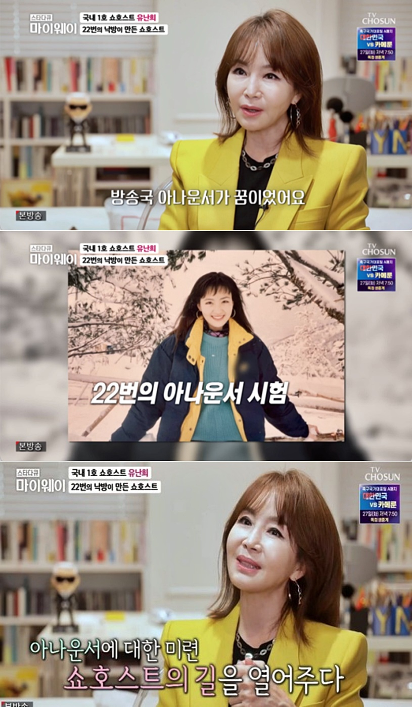 쇼호스트 유난희(57)가 꿈꿨던 아나운서를 포기하고 새로운 길을 선택한 사연을 공개했다.