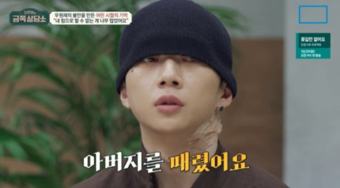 래퍼 우원재가 어린 시절 아버지가 손님에게 폭행당하는 것을 목격한 적이 있다고 고백했다.