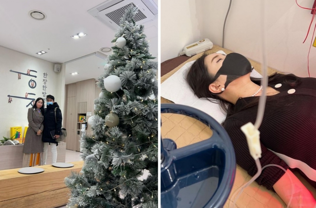 한창은 8일 자신의 인스타그램에 다수의 사진을 올리며 "병원 임직원으로 최선을 다해주는 우리 예쁘니. 분위기 업 해준다고 종일 고군분투하고 퍼져서 한약 먹고 수액 맞고"라고 적었다.