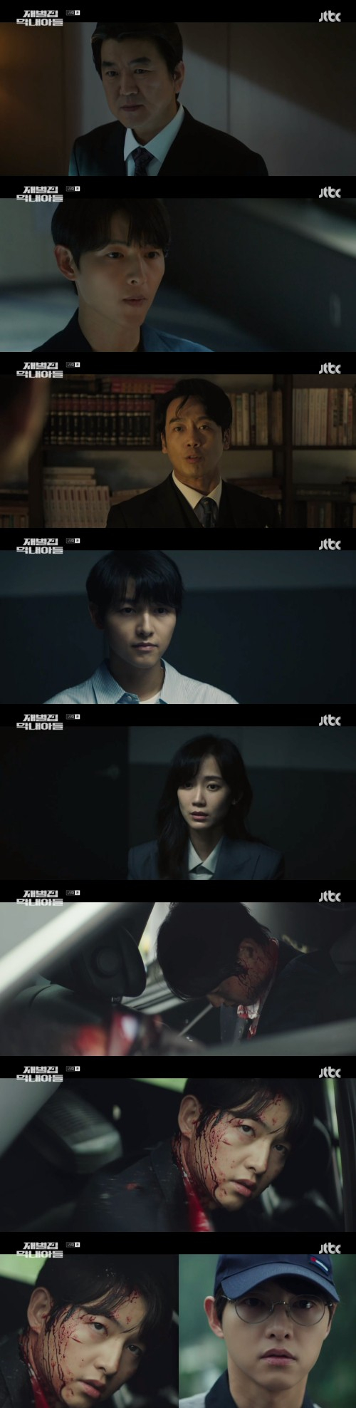 24일 방송된 JTBC 금토일 드라마 '재벌집 막내아들'에서 진도준(송중기 분)은 회귀 전 인물인 윤현우(송중기 분)에게 교통사고를 당했다.