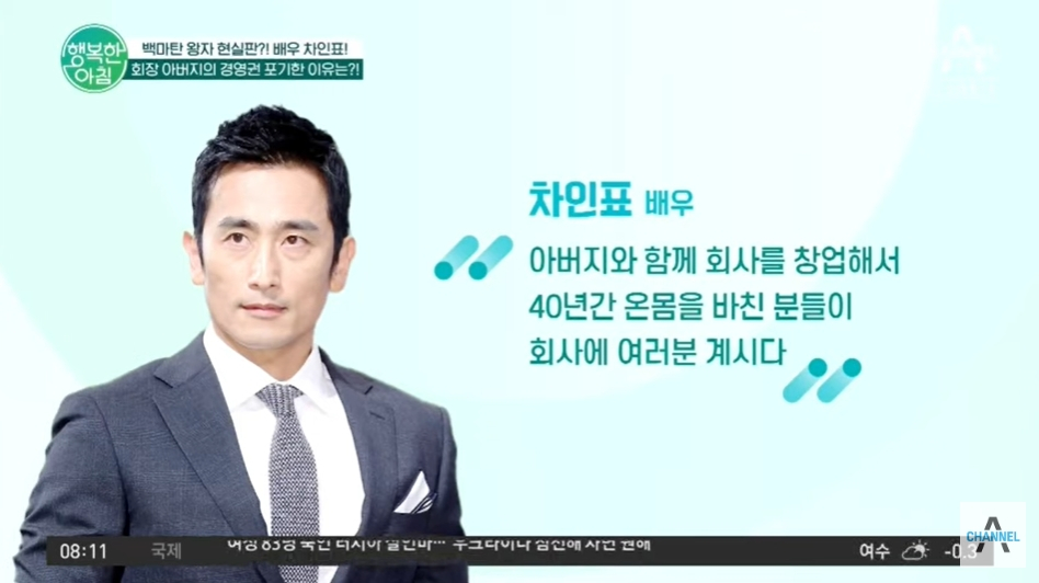 지난 18일 방송된 채널A '행복한 아침'에서는 차인표의 부친인 차수웅 전 우성해운 회장의 재력을 소개했다.