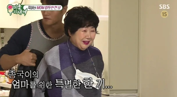 요리가 완성된 뒤 김종국의 어머니가 등장했다. 건강을 많이 회복한 모습에 MC 서장훈은 "참 다행이시다. 건강을 많이 회복하신 것 같다"며 반가워했다.