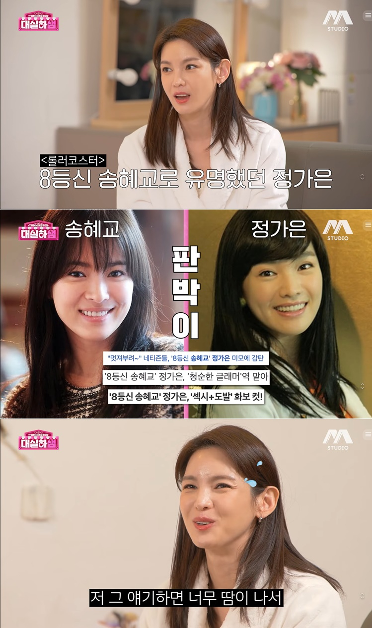 정가은은 과거 '송혜교 닮은 꼴'로 주목받았던 것에 대해 "그 얘기하면 땀이 너무 난다. 저는 감사하지만, 그분의 이름을 빌려서 뭔가 하는 느낌이 들어 죄송하다"고 털어놨다.