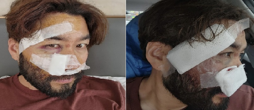 공유한 사진은 사고 후 심각했던 얼굴 상처부터 많이 나아진 현 상태까지를 다양하게 담고 있다.