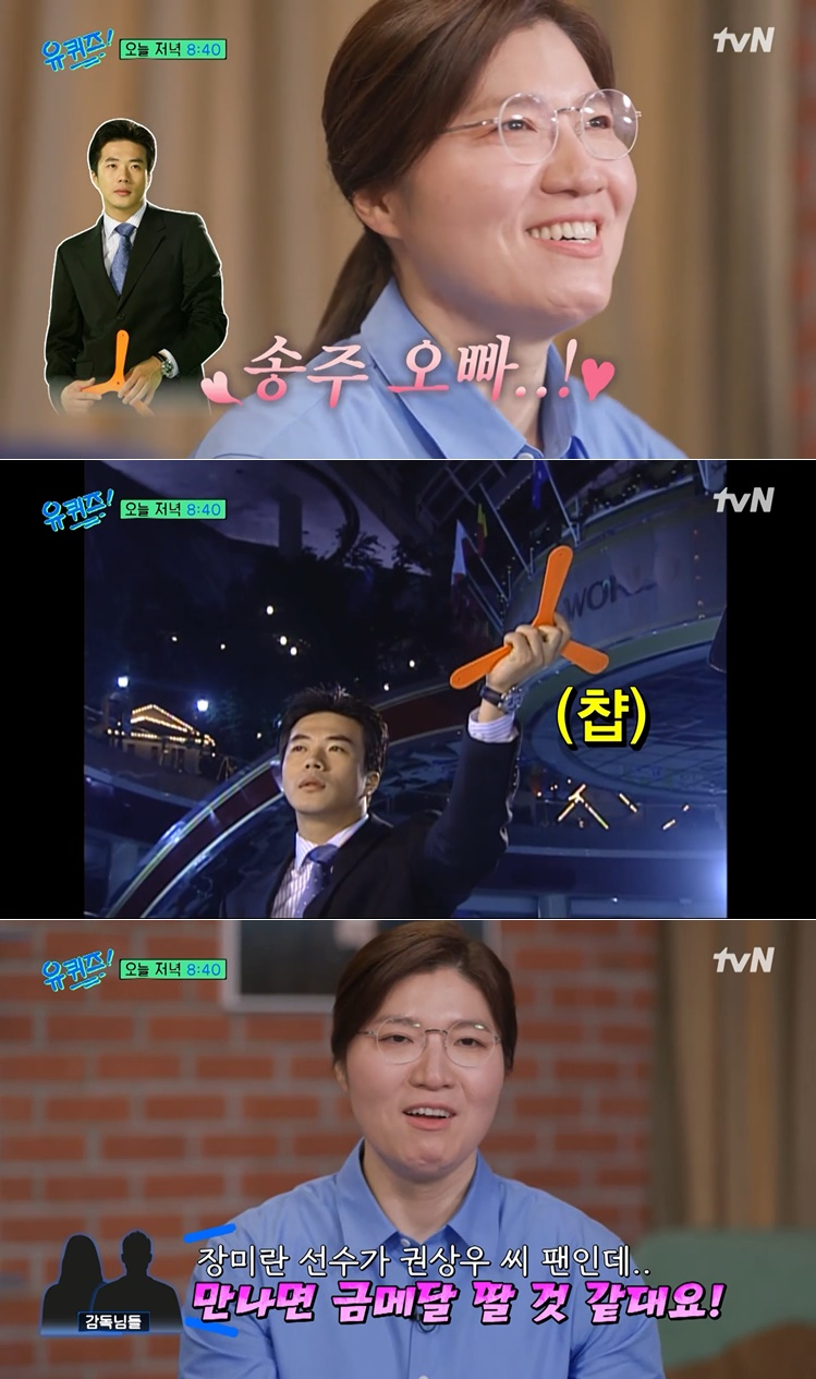 이어 "어느 날 아테네 올림픽 가기 전에 문체부 관계자분들이 격려하러 오셨다"며 "제가 원래 '누구 좋아한다'는 말을 못 한다. 그런데 감독님들이 '장미란 선수가 권상우씨 팬이다. 만나면 금메달 딸 것 같다고 한다'고 하셨다. 저는 몰랐다"고 설명했다.