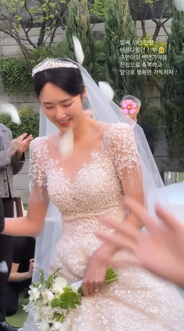 이날 결혼식에 참석한 배우 서하준은 "벌써 10년 인연. 아름다웠던 신부 주연이의 백년가약을 진심으로 축복하고, 앞으로 행복한 일만 가득하자"라는 글과 함께 정주연의 모습을 담은 사진을 공개했다.
