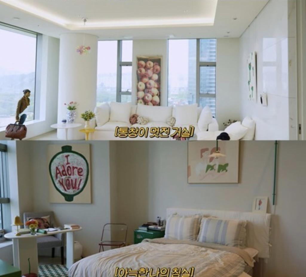 서울숲이 내다보이는 통창으로 된 거실과 햇살이 가득 들어오는 발코니, 깔끔한 부엌, 아늑한 침실, 집안 곳곳에 놓인 작품들까지 집 소개를 마친 뒤 건강을 챙기는 모닝 루틴도 소개했다.