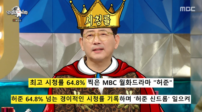 그는 "택시를 탔는데 기사님이 신호등 무시하고 막 달려 천천히 가달라고 하는데도 과속을 하더라. 물어보니까 기사가 '죄송하다. '허준' 할 시간이 됐다'고 하더라"라고 말해 감탄을 자아냈다. 그러면서 "최고 시청률 65%에 가까운 시청률이라고 하면 도로가 한산했다"고 회상했다.