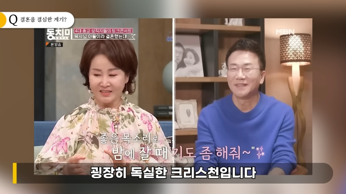 실제로 선우은숙은 방송에서 "유영재에게 결혼 전 '나와 신앙생활을 같이 할 수 있겠냐'고 물었더니 유영재가 '나 목사 아들'이라고 답해 결혼을 결심했다"면서도 "남편이 결혼 이후에는 기도를 잘 안 해준다"고 토로한 바 있다.