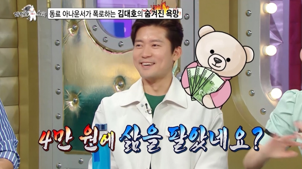 후배의 폭로에 김대호는 "너무 고마운데 드릴 게 없었다"며 머쓱해 했고, MC 코드 쿤스트는 "(격투기선수) 정찬성의 글러브 같은 개념"이라고 덧붙여 웃음을 자아냈다.